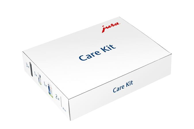 V novej údržbovej súprave (známej i ako „Care Kit“) nájdete všetky podstatné prostriedky na údržbu. Súprava „Care Kit“ obsahuje 3 filtre CLARIS Smart, 1 čistič mliečnych ciest s objemom mini tabs, 6 čistiacich tabliet a 2 hadičky na mlieko. Vďaka novej súprave „Care Kit“ usporíte nielen peniaze, ale aj priestor potrebný na uschovanie údržbových prostriedkov. Riešením je krabička „Care Kit Box“, ktorá sa vďaka svojmu praktickému tvaru zmestí do každej chladničky.